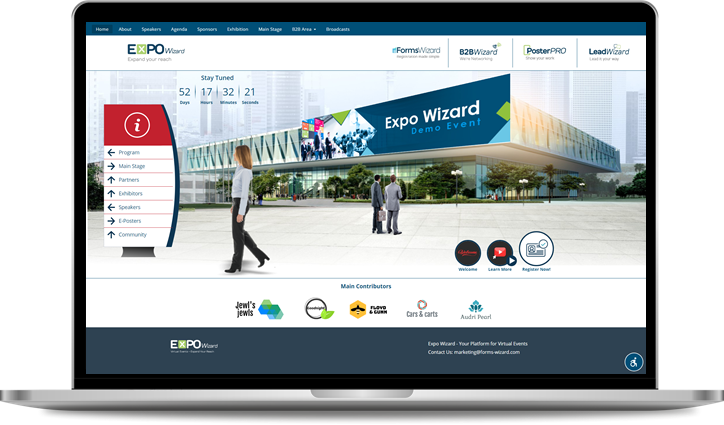 מאולמות תערוכה מלאי פעילות לתוכן חי מעורר השראה ופגישות וירטואליות 1:1 – פלטפורמת Expo Wizard מעניקה למשתתפים שלכם חווית כנס וירטואלי מלאה מבלי לצאת מהבית.